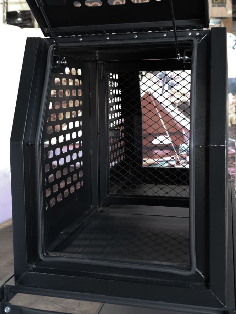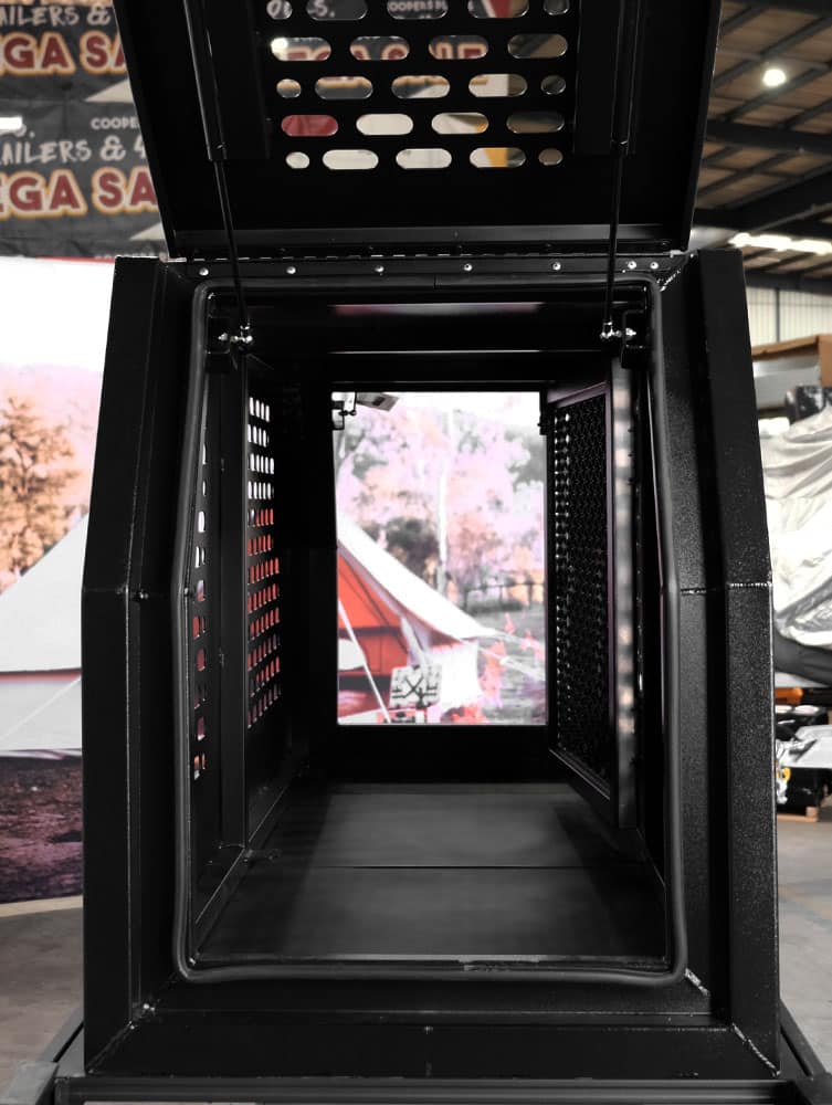 Our dog boxes are designed to provide a safe and comfortable environment for your dog while you travel or engage in any other outdoor activity. They are made from high-quality marine grade black powder-coated aluminium material and equipped with features like ventilation holes and locking doors.